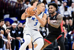 “他就是在做他自己,”此役貢獻(xiàn)24分11籃板的保羅-班凱羅如是說道,“這就是他在加盟球隊(duì)的第一天我們要求他去做的事情?!?/p>