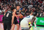 不過(guò)接下來(lái),楊瀚森在防守端被麥克丹尼爾斯隔扣,并且在進(jìn)攻端的勾手投籃被戈貝爾封蓋。上半場(chǎng),楊瀚森打了5分16秒,拿到2分1籃板,出現(xiàn)1次犯規(guī),下場(chǎng)休息。