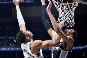 來(lái)自希臘的揚(yáng)尼斯-阿德托昆博首戰(zhàn)出場(chǎng)26分45秒,26中16,其中三分3中1,罰球7中4,得到37分14籃板5助攻,正負(fù)值+10。