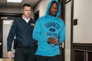 美媒basketballforever曬出了羅齊爾庭審前的照片,他戴著手銬,穿著黃蜂連帽衫。