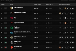 體育資訊10月24日訊 拳頭官網(wǎng)更新全球戰(zhàn)隊實力排名: