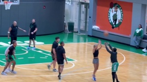 體育資訊10月15日訊 凱爾特人與贊助商N(yùn)ew Balance今日聯(lián)合舉辦了教練vs媒體的友誼賽。