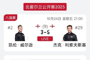 體育資訊10月25日訊 2025斯諾克北愛爾蘭公開賽1/4決賽,杰克-利索夫斯基5-3戰(zhàn)勝凱倫·-威爾遜,晉級四強。