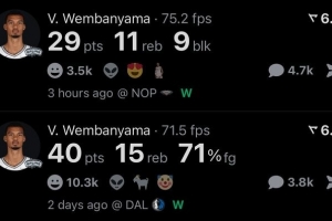 賽季前兩場(chǎng),文班合計(jì)砍下69分26籃板12蓋帽,真是命中率68.2%,零失誤!