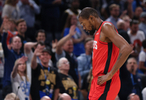 比賽最后幾分鐘的大部分進(jìn)攻回合,火箭都是由杜蘭特負(fù)責(zé)持球推進(jìn)。每一次他持球,現(xiàn)場(chǎng)18055名觀眾都會(huì)起身歡呼,為這位球隊(duì)新核心得分手喝彩,杜蘭特也注意到了這一點(diǎn)。