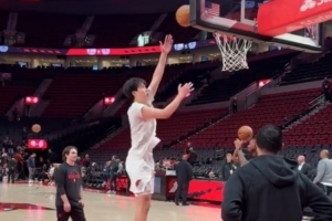 體育資訊10月15日訊 今日季前賽開拓者對陣勇士,賽前斯普利帶領(lǐng)楊瀚森和克林根訓(xùn)練。
