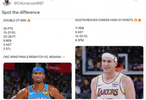 賽后美媒露天看臺(tái)曬出了里夫斯的數(shù)據(jù)但沒寫上罰球數(shù)據(jù),而此前亞歷山大對(duì)步行者砍下55分的比賽數(shù)據(jù)卻有寫上罰球,雷霆隨隊(duì)記者Clemente Almanza對(duì)此寫道:“發(fā)現(xiàn)了區(qū)別。”