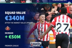體育資訊10月27日訊 《轉(zhuǎn)會市場》在近日已經(jīng)更新了五大聯(lián)賽球隊身價,他們也據(jù)此列出了各大聯(lián)賽最新身價更新后的身價(歐元)上漲和下降最多的球隊。