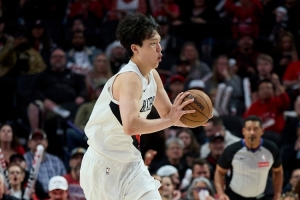 體育資訊10月15日訊 NBA季前賽,開拓者對(duì)陣勇士,首節(jié)楊瀚森出戰(zhàn)4分鐘得到2分4籃板。