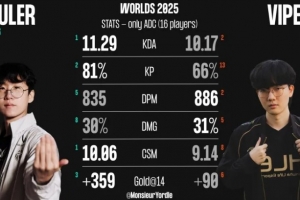 Ruler在KDA、參團(tuán)率、分均補(bǔ)刀、14分鐘對(duì)位經(jīng)濟(jì)差方面多項(xiàng)領(lǐng)先,而Viper在分均輸出、傷害占比方面較為領(lǐng)先。