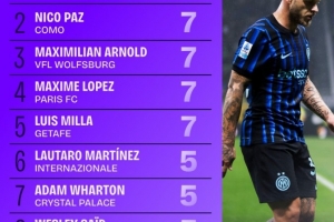 3、馬克西米利安-阿諾德(沃爾夫斯堡):7次
