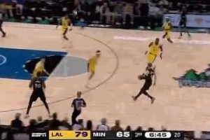 GIF-蘭德爾強突上籃被吹進攻犯規(guī),森林狼挑戰(zhàn)成功變2+1