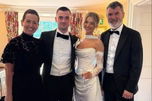 體育資訊10月30日訊 據(jù)《太陽報》報道,曼聯(lián)傳奇羅伊-基恩的兒子艾丹上周末舉行了婚禮。基恩在社媒分享了一張家庭合影,照片中他身穿燕尾服與妻子特蕾莎和新婚夫婦站在一起。