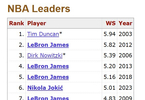 季后賽歷史單賽季勝利貢獻(xiàn)值最高的10位球員: