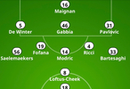巴特薩吉????、里奇????、莫德里奇????、福法納????、薩勒馬科爾斯????組成五中場(chǎng);
