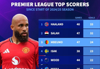 北京時(shí)間10月31日,德轉(zhuǎn)統(tǒng)計(jì)出了上賽季至今英超聯(lián)賽進(jìn)球最多的10名球員,哈蘭德33球排名第一,薩拉赫32球第二,本賽季為曼聯(lián)在聯(lián)賽中9場(chǎng)打進(jìn)4球的姆伯莫位列第三。
