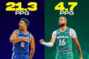 格萊姆斯在76人目前是場均21.3分,而馬丁在獨(dú)行俠則是18場共得85分,場均4.7分。