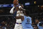 本場比賽東契奇?zhèn)?場比賽后,攜手斯馬特復(fù)出。湖人一度在第二節(jié)比賽被灰熊打出一波19-0的進攻高潮,灰熊轟出單節(jié)42分高分,導(dǎo)致湖人半場比賽結(jié)束時落后14分。