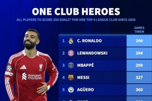 體育資訊11月2日訊 英超第10輪比賽,薩拉赫破門,利物浦主場(chǎng)2-0擊敗維拉。薩拉赫各賽事為利物浦攻入250球,德國轉(zhuǎn)會(huì)市場(chǎng)統(tǒng)計(jì)了本世紀(jì)五大聯(lián)賽球員為單一俱樂部攻入250球所用場(chǎng)次,并列出榜單。