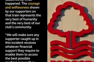 俱樂部老板馬里納基斯表示:“諾丁漢森林全體成員對(duì)發(fā)生的悲劇感到震驚和深切悲痛。我們的支持者在列車上展現(xiàn)的勇氣和無私,體現(xiàn)了最崇高的人性光輝和最寶貴的俱樂部社區(qū)精神。”