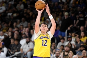 仿佛是為了鼓勵他,最后湖人收尾:里夫斯、盧卡、拉拉維亞、布朗尼、海耶斯。維金斯中圈施壓,里夫斯投進(jìn)中投;之后拉拉維亞內(nèi)切空接拉開8分,完成里夫斯第10次助攻,拉拉維亞找盧卡拋射,自己點進(jìn)前場籃板,事實上鎖局。