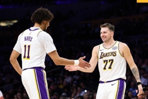 賽后,湖人官方社媒分享贏球海報(bào),并寫道:“洛杉磯今晚很吵。”海報(bào)上,東契奇和海斯擊掌慶祝。
