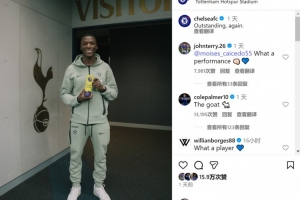 凱塞多當(dāng)選本場比賽最佳球員,他與切爾西社媒展示全場最佳獎杯,特里、帕爾默留言。
