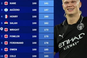 體育資訊11月3日訊 德轉(zhuǎn)盤點了英超歷史達成百球最快用時榜,而哈蘭德107場98球十分有望創(chuàng)造新的紀錄,以下為具體榜單: