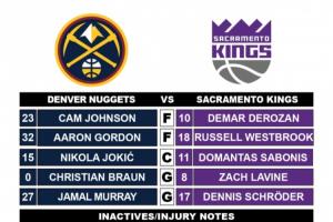 掘金首發(fā):賈馬爾-穆雷、克里斯蒂安-布勞恩、卡梅隆-約翰遜、阿隆-戈登、尼科拉-約基奇