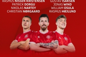 后衛(wèi):韋斯特高(萊斯特城)、安諾森(富勒姆)、克里斯滕森(巴薩)、霍斯貝里(斯特拉斯堡)、維克托-尼爾森(維羅納)、拉斯穆斯-克里斯滕森(法蘭克福)、多爾古(曼聯(lián))
