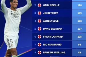 體育資訊11月5日訊 在本輪歐冠,利物浦1-0擊敗皇馬。貝林厄姆完成生涯50場歐冠里程碑,德轉也盤點了英格蘭球員歐冠出場次數(shù)榜,具體如下: