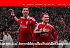 北京時間11月5日凌晨,本賽季歐冠聯(lián)賽第一階段(聯(lián)賽階段)第四輪上演兩場強強對話。英超利物浦隊主場1比0擊敗西甲皇家馬德里隊,送給對手本賽季歐冠賽場首??;德甲拜仁慕尼黑隊客場2比1擊敗上屆冠軍法甲巴黎圣日耳曼隊,達成賽季開局各項賽事16連勝的壯舉。