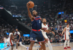 哈登打進(jìn)了高難度續(xù)命三分,小卡落后1分壓時(shí)間賭絕殺其實(shí)沒毛病,畢竟上一戰(zhàn)也是似曾相識的劇本。小卡確實(shí)想當(dāng)英雄,但鮑威爾成功把卡子哥阻截在三分線外,維金斯及時(shí)夾擊,不讓小卡去到右側(cè)零度角甜點(diǎn)位,小卡面對包夾強(qiáng)投三分打鐵。