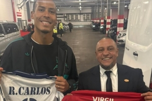 體育資訊11月5日訊 在利物浦結(jié)束與皇馬的歐冠較量后,紅軍隊(duì)長維范戴克在社交媒體上曬出與皇馬傳奇左后衛(wèi)羅伯托-卡洛斯的合影,兩人并互換了球衣。