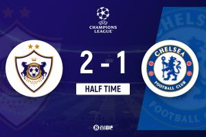 上半場(chǎng)傷停補(bǔ)時(shí)3分鐘,半場(chǎng)結(jié)束,切爾西暫1-2卡拉巴赫。