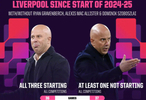 據(jù)Opta數(shù)據(jù)統(tǒng)計(jì),這三人組合在所有賽事中共同首發(fā)的36場(chǎng)比賽,取得26勝3平7負(fù)的成績(jī)。相比之下,37場(chǎng)至少有一人缺席首發(fā)的比賽中,球隊(duì)的勝率從72.2%降至59.5%(22勝7平8負(fù))。此外,三人同時(shí)在場(chǎng)時(shí),球隊(duì)場(chǎng)均失球僅0.8個(gè),而缺少任一人首發(fā)時(shí)場(chǎng)均失球增至1.4個(gè)。