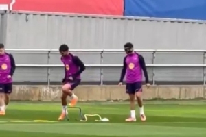 David Ibá?ez在社交媒體曬出巴薩訓(xùn)練視頻,并配文寫(xiě)道:“巴薩今日進(jìn)行訓(xùn)練,備戰(zhàn)對(duì)陣塞爾塔的比賽。埃里克-加西亞佩戴面具訓(xùn)練,克里斯滕森明日也可能隨隊(duì)出征?!?/p>