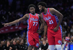 賽前76人公布了本場首發(fā):馬克西、埃奇庫姆、烏布雷、沃特福德、恩比德。