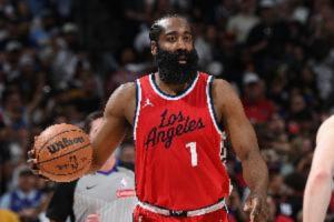 全場比賽,哈登出戰(zhàn)40分鐘,投籃15中4,三分10中2,拿到13分13助,正負值-18全場最低。