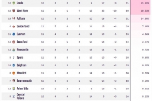 根據(jù)OPTA超級(jí)計(jì)算機(jī)的預(yù)測(cè),狼隊(duì)的降級(jí)概率已高達(dá)90.31%,伯恩利降級(jí)概率也超過5成為50.12%,排在伯恩利身后的為諾丁漢森林(44.92%)、利茲聯(lián)(41.26%)、西漢姆聯(lián)(40.33%)以及富勒姆(14.85%)。值得一提的是,身為升班馬的桑德蘭表現(xiàn)驚艷,目前他們?cè)谟⒊懈呔拥?位,降級(jí)概率僅為7.49%。
