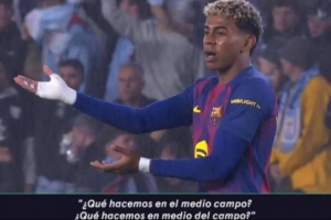 根據(jù)Movistar鏡頭顯示,被塞爾塔攻入他們的第一球后,亞馬爾顯得有些不滿,他向隊友們問道:“我們的中場在干什么?”隨后,他與一些隊友進行了交流,試圖找到改進的方法。類似的情況在比分變成2-2后再次出現(xiàn),DAZN的鏡頭似乎捕捉到了亞馬爾似乎在提醒隊友們防線壓得太靠上,應該稍微往后退。