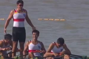 體育資訊11月10日訊 第十五屆全國運(yùn)動(dòng)會(huì)男子四人雙槳決賽,來自江蘇隊(duì)的張自毫、臧哈、張漢文、蔡鵬鵬以4:12.24強(qiáng)勢奪魁,拿下賽艇項(xiàng)目首枚金牌!