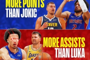康寧漢姆場(chǎng)均25.6分>約基奇的25.2分;場(chǎng)均9.8次助攻>東契奇的9.5次;活塞目前8勝2負(fù)高居?xùn)|部第一。