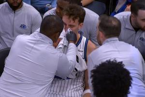GIF-小瓦格納被卡馬拉肘到鼻子,下場(chǎng)接受治療!