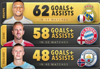 Score 90統(tǒng)計(jì)了2025年在各項(xiàng)賽事(包括俱樂部和國家隊(duì))中參與進(jìn)球最多的五大聯(lián)賽前鋒球員: