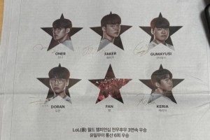體育資訊11月11日訊 T1在S15奪冠后,選手們登上韓國報紙: