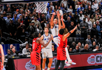 “當(dāng)時我們?yōu)楸A_(班凱羅)設(shè)計了一個戰(zhàn)術(shù),讓他去接球,但對方防得不錯,”貝恩賽后談到這記絕殺,“當(dāng)時氣氛有些緊張,那一球我其實(shí)手感不太好,但我一直相信自己的投籃。我看到球還在空中的時候隊(duì)友們就已經(jīng)開始慶祝了,但當(dāng)時由于我是后仰出手,我其實(shí)很難看清球是否正中籃筐,但那一刻的感覺真的很棒?!?/p>