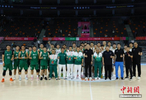 11月5日,在東莞籃球中心舉行的第十五屆全國運動會籃球項目男子成年組小組賽中,澳門隊60:124負(fù)于遼寧隊。圖為賽后兩隊合影?!≈行律缬浾?韓海丹 攝