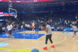 體育資訊11月12日訊 杰倫·威廉姆斯在今天主場對陣勇士賽前進(jìn)行投籃訓(xùn)練,他那只正在恢復(fù)中的右手腕仍然纏著護(hù)具。