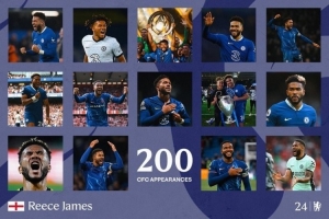 切爾西官推曬出海報(bào),并寫(xiě)道:“200場(chǎng)里程碑取得進(jìn)球,里斯-詹姆斯是純血切爾西人?!?/p>